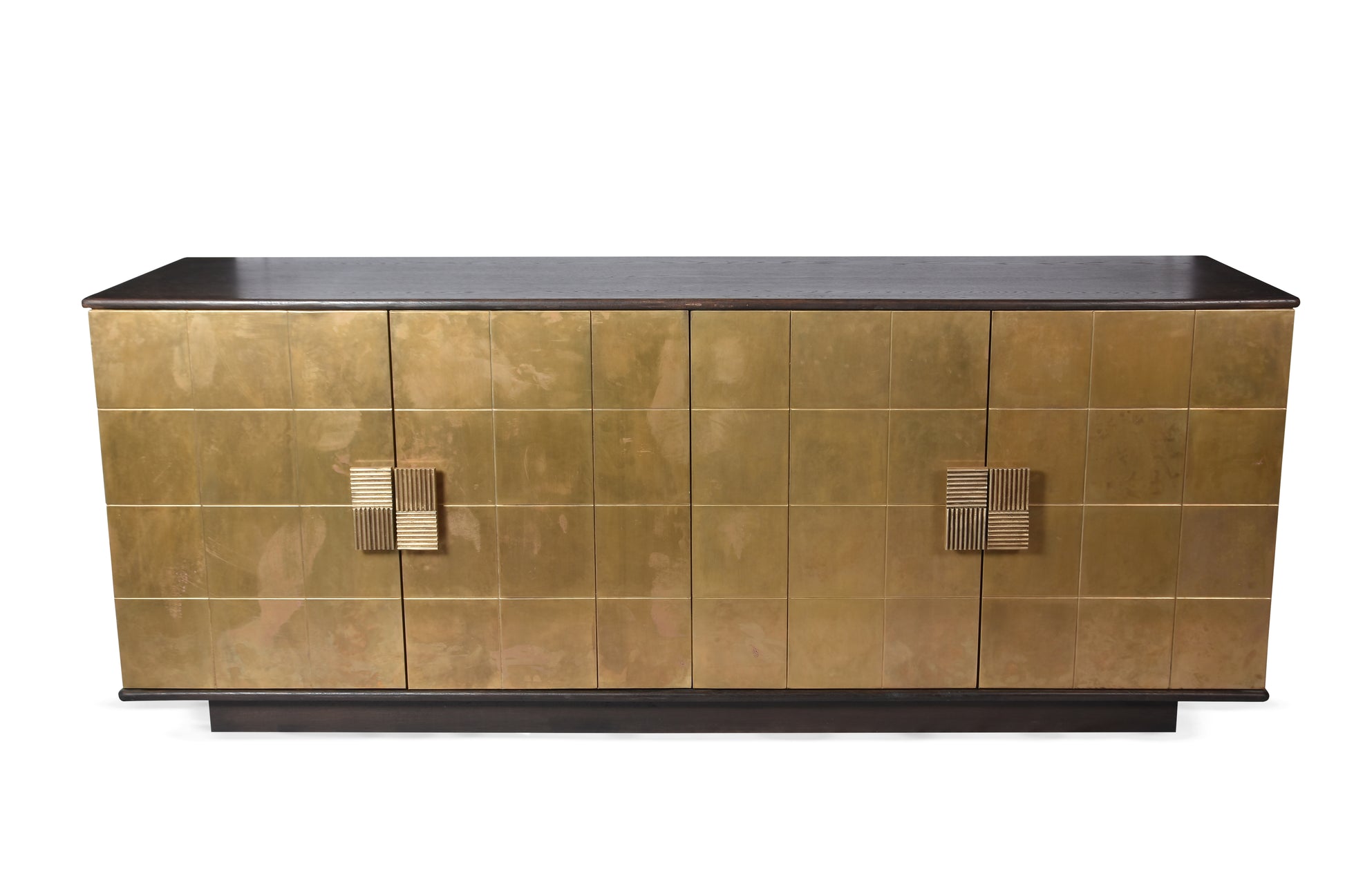 Luxe Brass-Tiled Sideboard – A Fusion of Glamour and Functionality