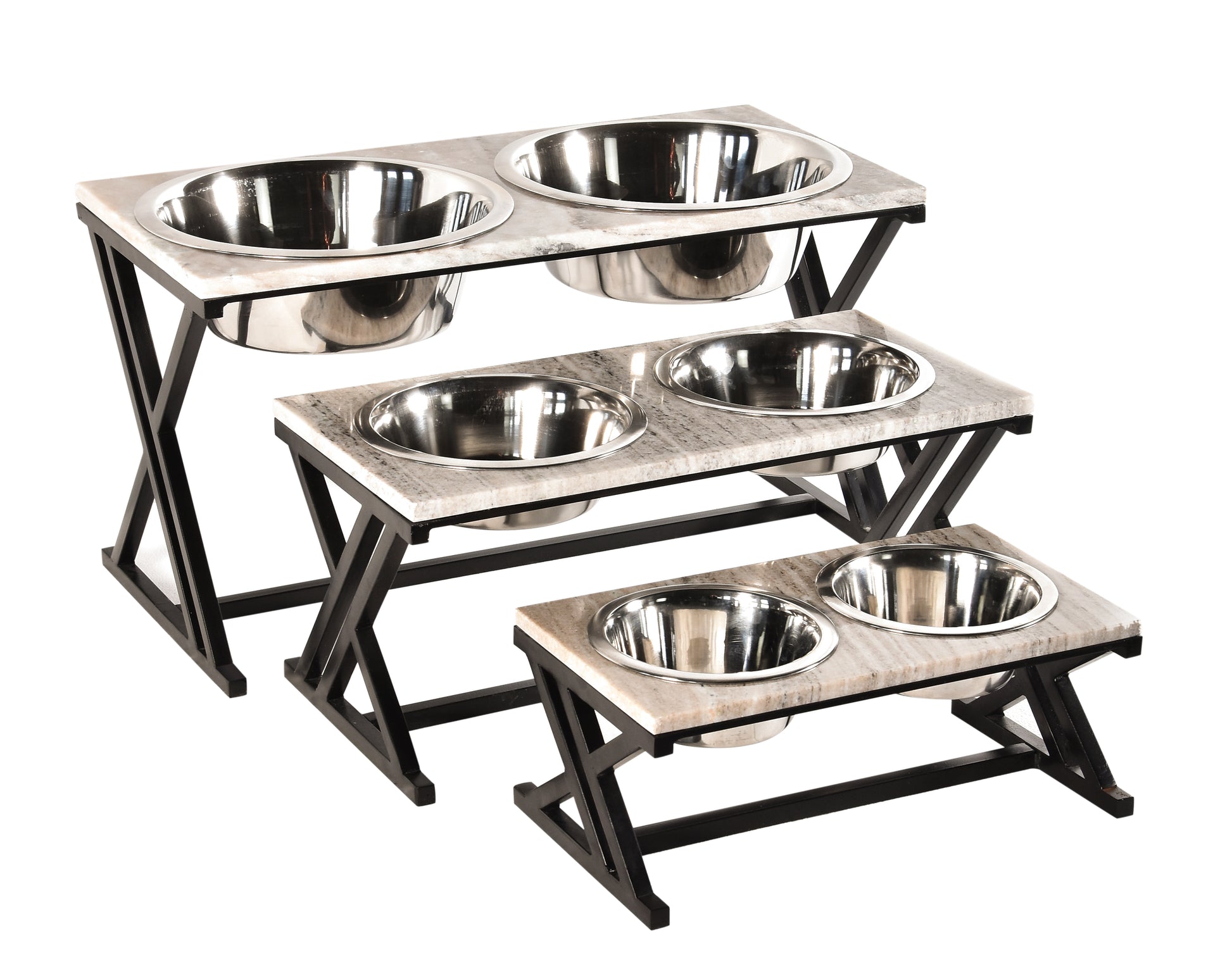 Treat your furry companions to mealtime in style with the Marbella Pet Feeder, a stunning fusion of form and function. Designed with modern homes in mind, this chic feeder set features a sleek marble top with two inset stainless steel bowls, all supported by an X-frame iron base for unmatched elegance and stability.