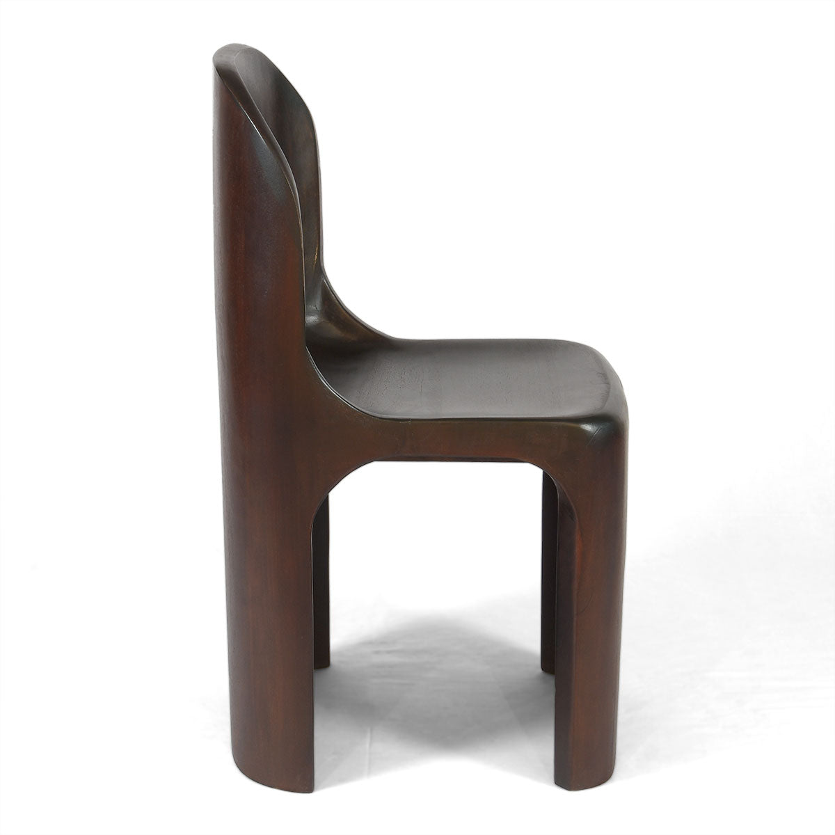 Carved from solid wood with a rich, deep finish, its smooth contours and ergonomic design offer exceptional comfort and support. The gracefully curved backrest enhances the seating experience, making it an ideal piece for dining spaces, statement corners, or design-forward interiors.