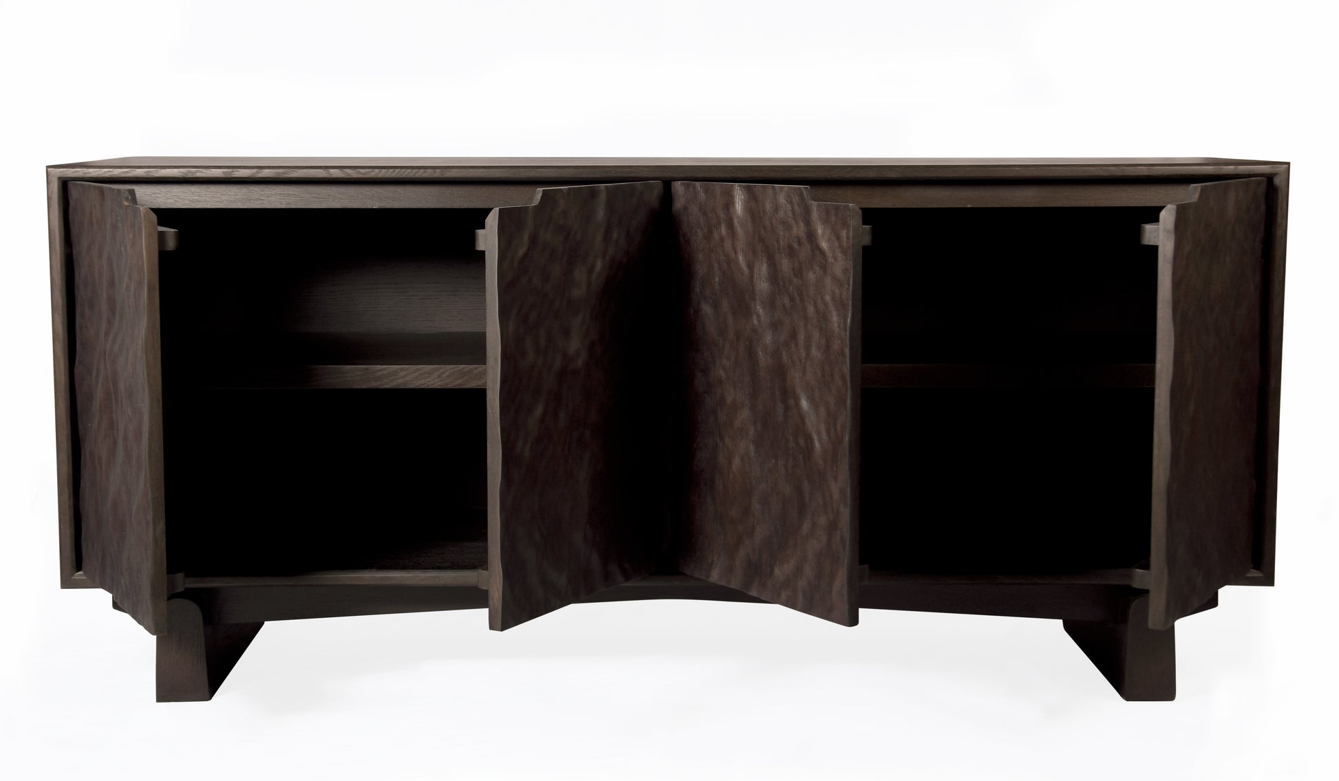 A bold statement in modern craftsmanship, our Textured Wood Sideboard is designed to captivate. Featuring an intricately hand-carved front with a rippling texture, this piece blends organic artistry with contemporary minimalism. The deep, rich wood finish enhances its sculptural appeal, creating a dramatic interplay of light and shadow.