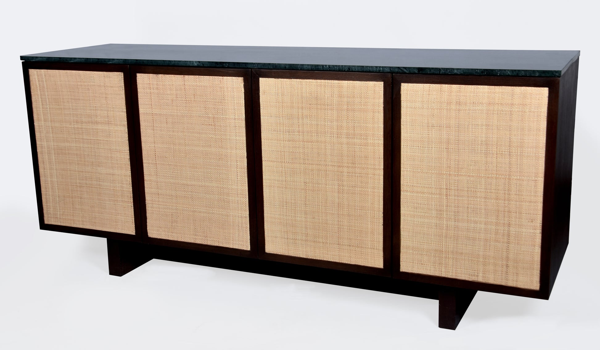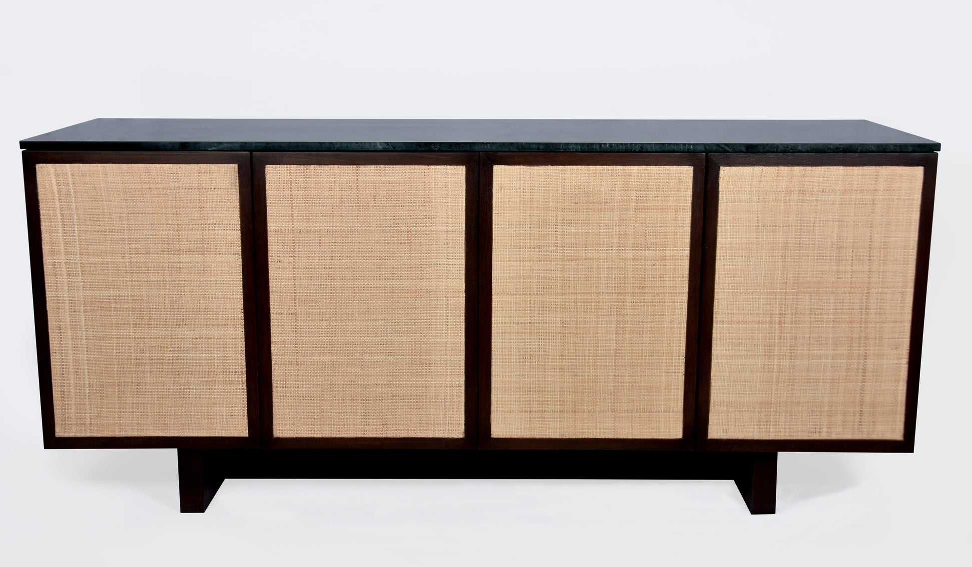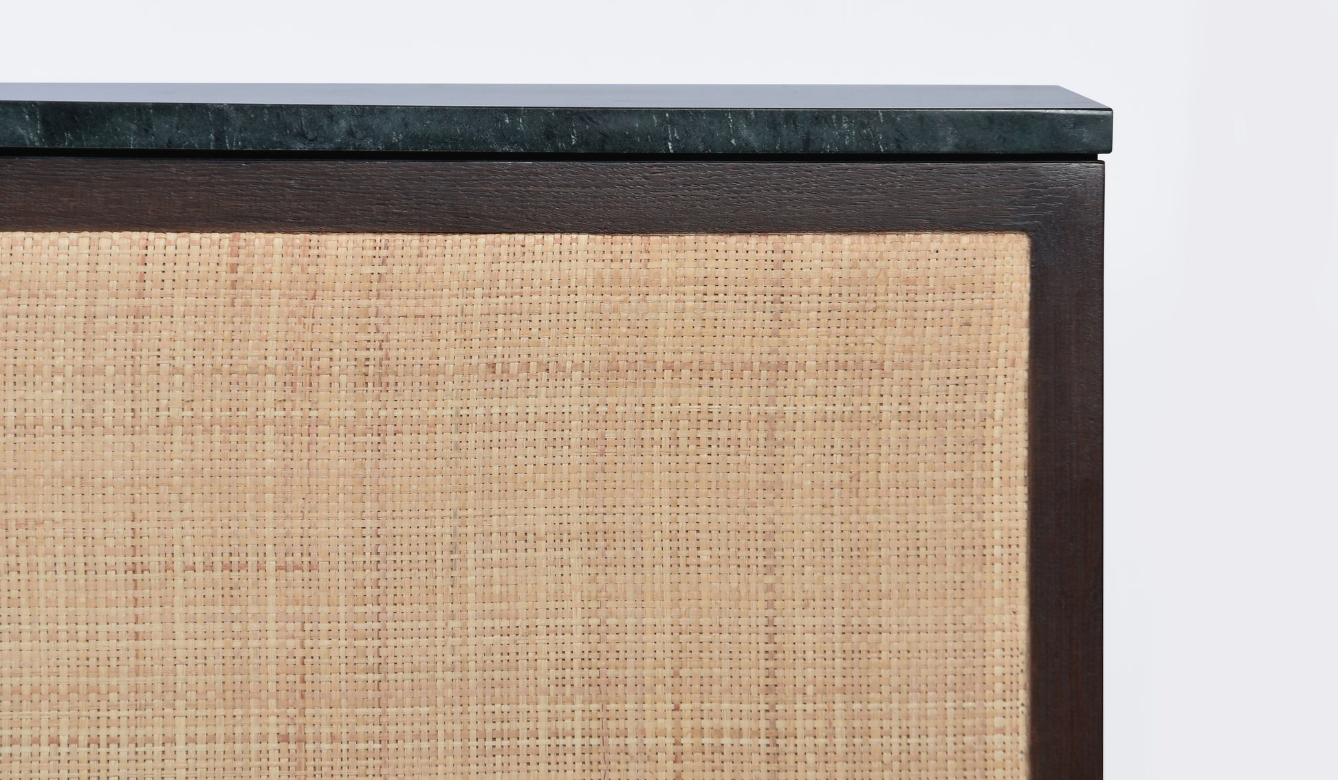 A seamless blend of timeless craftsmanship and contemporary aesthetics, the Sienna Cane Sideboard is designed to bring warmth and elegance to any living space. This four-door storage unit features meticulously handwoven natural cane panels, framed by rich wooden borders, and topped with a luxurious marble surface. The interplay of materials creates a striking contrast, making it an exquisite statement piece for any home.