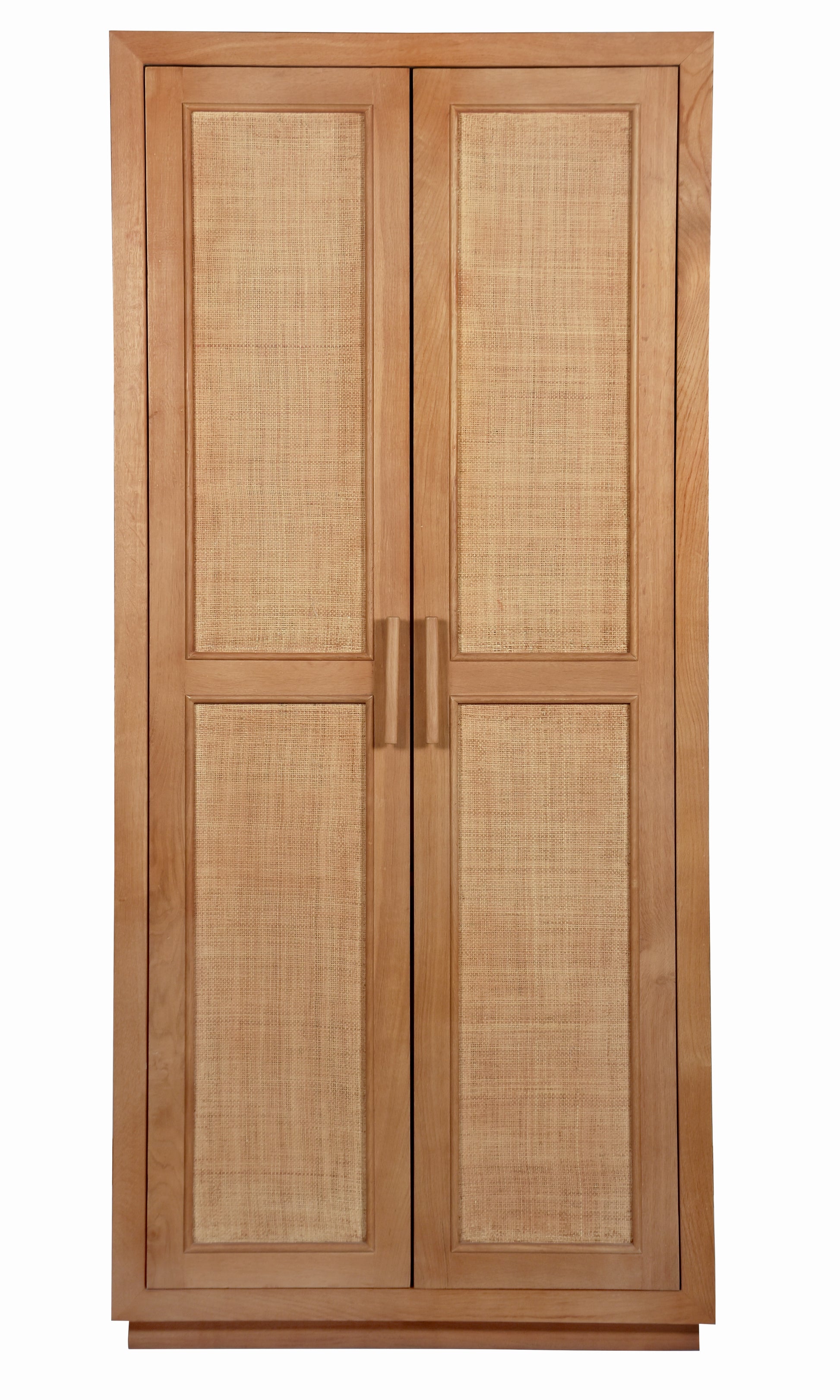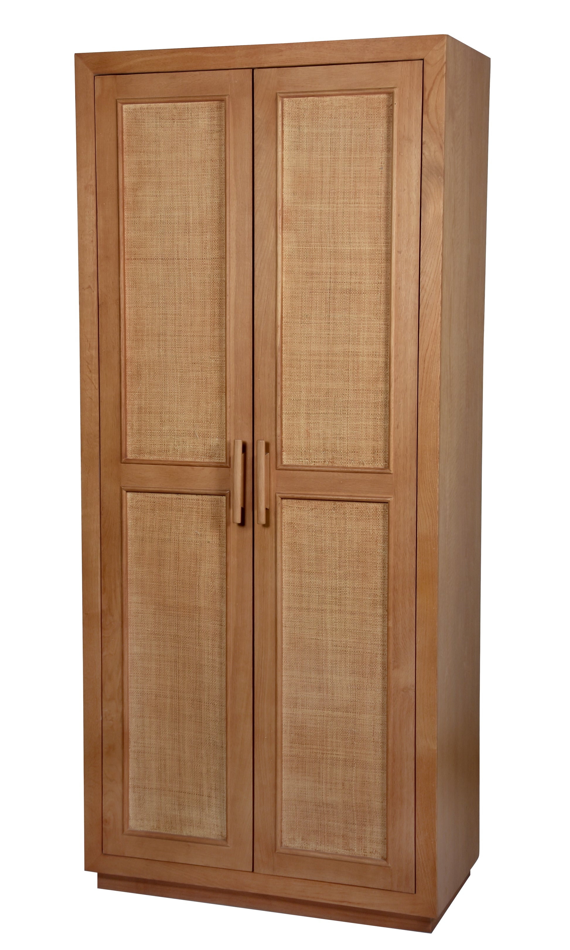 Bring warmth and texture to your living space with our beautifully crafted The Solace Cane Wardrobe. Designed to seamlessly blend timeless craftsmanship with modern minimalism, this piece is an ideal addition to any bedroom or living area. The sturdy wooden frame showcases the organic charm of solid wood, while the intricately woven rattan panels lend a touch of rustic sophistication. Its two spacious doors open to reveal ample storage, keeping your space clutter-free and organized. The sleek wooden handles complement the earthy tones, adding a refined finish to the wardrobe’s design.