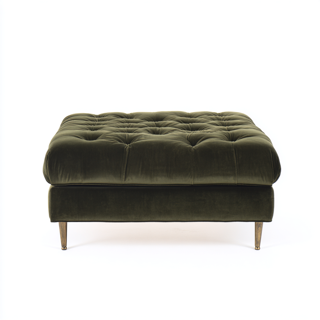 Wrap your living space in refined comfort with VeloraHaven. Upholstered in sumptuous deep-green velvet with hand-tufted detailing, this ottoman embodies timeless elegance with a modern edge. Its low-slung silhouette and slim tapered legs with antique brass accents make it a versatile piece that pairs effortlessly with both contemporary and classic interiors.